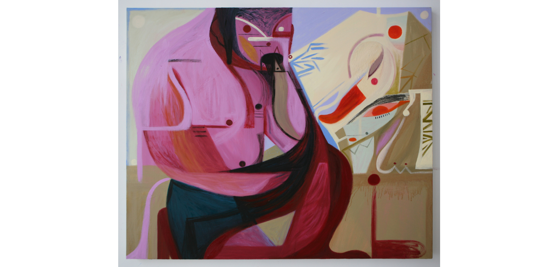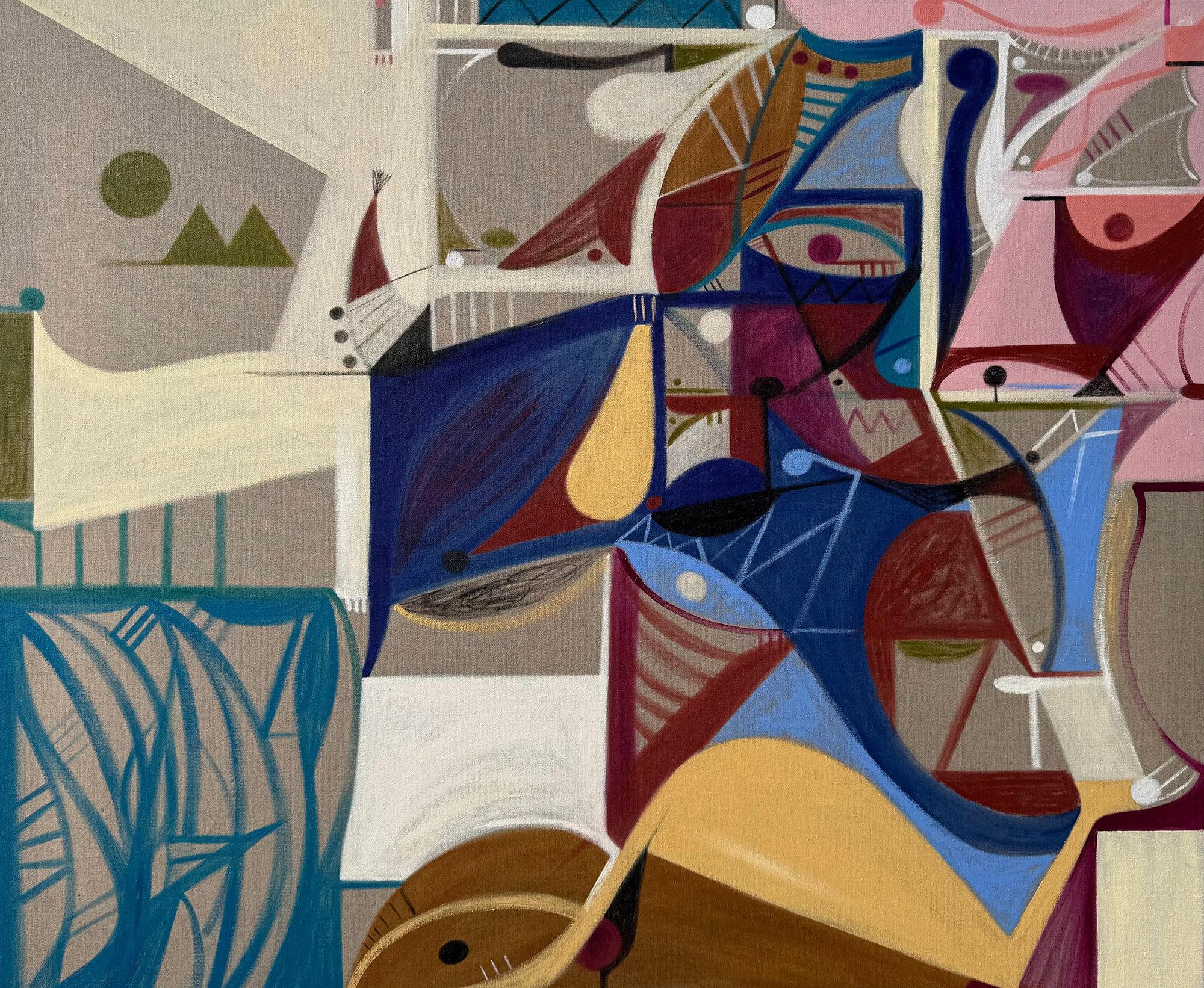 He extracts interior and psychological spaces from TV series and movies and uses them to create new spaces through abstraction, distortion and a unique visual language referencing Greek modernism.